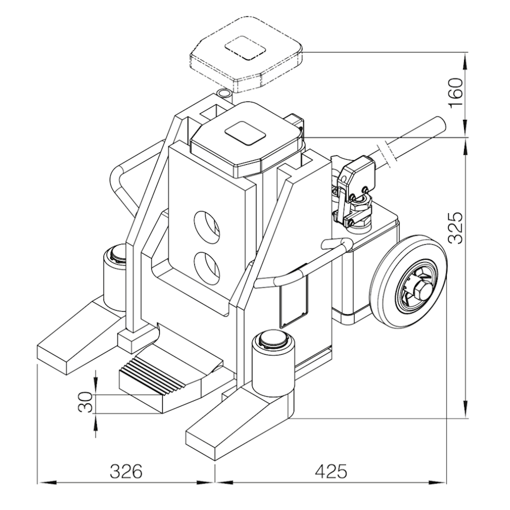 - Gumowe koła ułatwiające przewożenie podnośnika na stanowisko pracy.