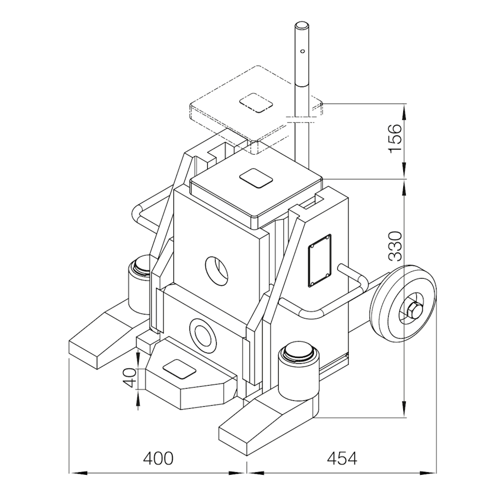 - Stabilizujące stopki obrotowe zabezpieczające dźwignik przed przechyleniem w trakcie podnoszenia.