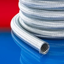 Super-screening (EMC) metal protection conduit; extremely robust; double folded metal profile; braiding: tinned copper wire