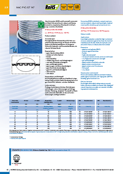 » Produkty » Wentylacja, węże, odpylanie » Systemy ochrony kabli i przewodów » Węże metalowe » MeC PVC-ST 147GABOR