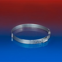 Opaska zaciskowa z jednym uchem do montażu węży dyfuzorów membranowych na wspornikach (rusztach).