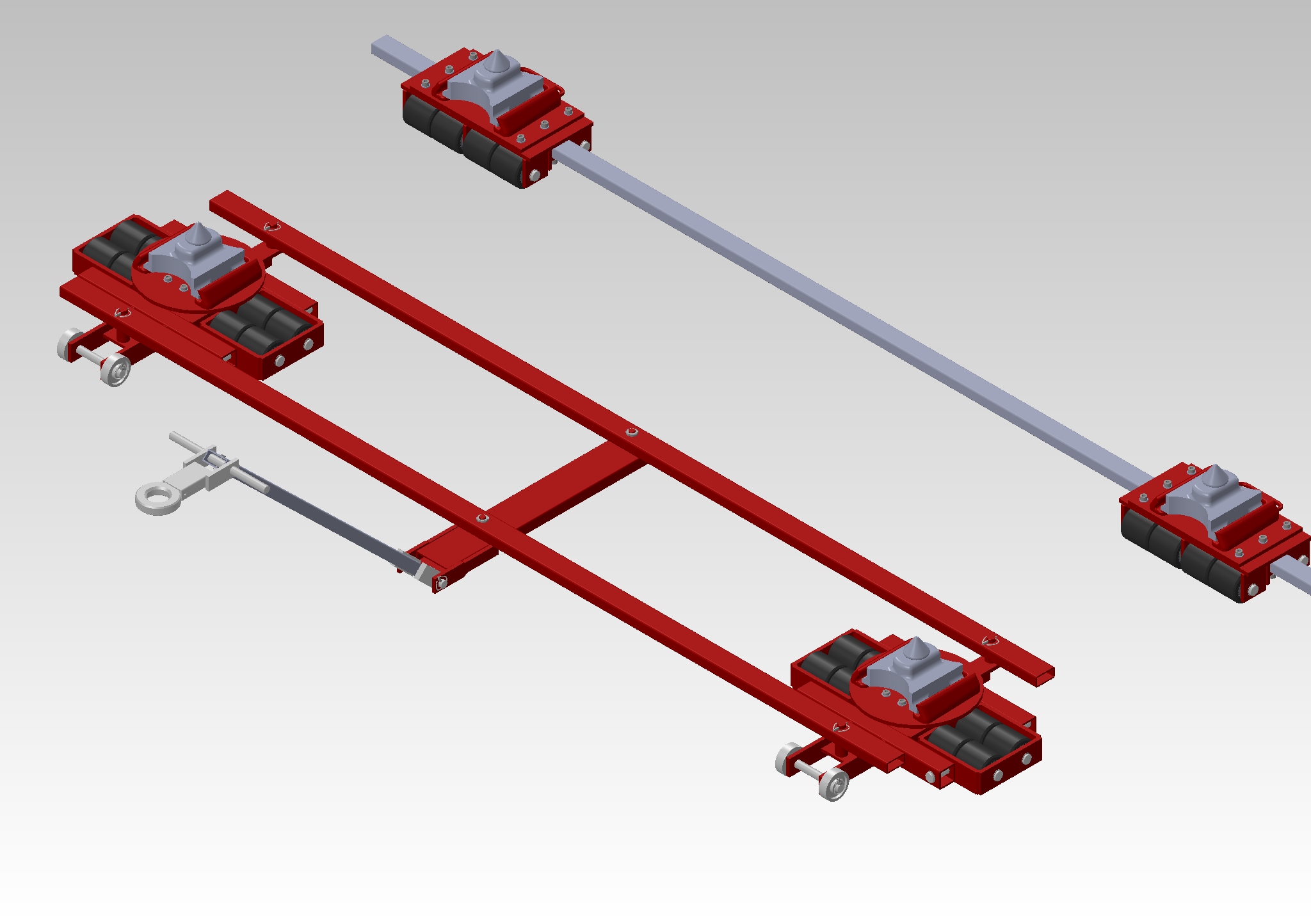 - Set de chasis tándem con 4 puntos de apoyo para la conexión rápida y segura de chasis y contenedores ISO con mecanismo de bloqueo Twistlock.