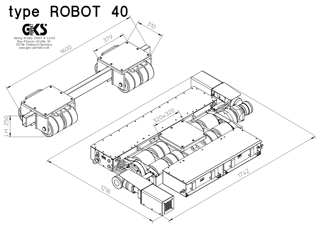 - Remote control: Simultaneous forward/backward pushing of the controller moves the ROBOT forward/backward. Proportional speed control. Turning of the L-ROBOT on the spot under the load is possible. Interferences of other frequencies are detected, in which case the control unit switches off automatically.