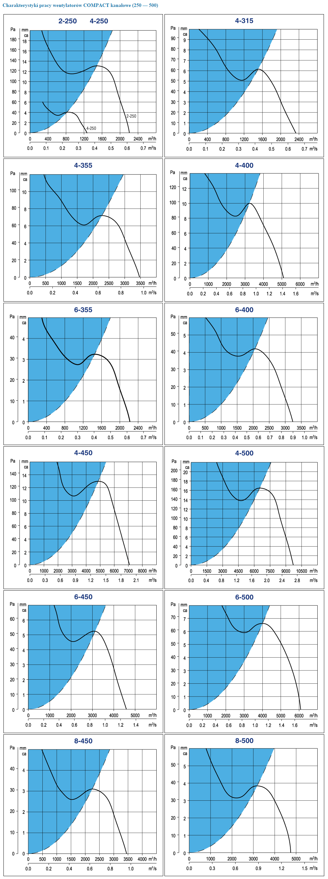 ![]() | Charakterystyki pracy wentylatorów kanałowych COMPACT (250-500) |