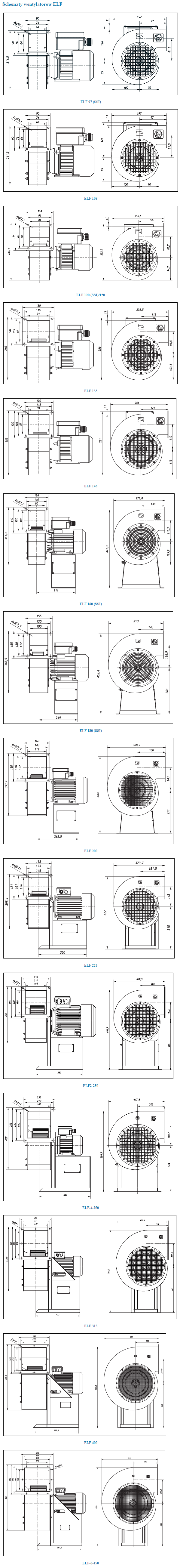 ![]() | Wymiary przeciwwybuchowych wentylatorów promieniowych ELF |