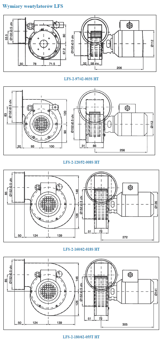 ![]() | Wymiary wentylatorów chemoodpornych wysokotemperaturowych LFS |