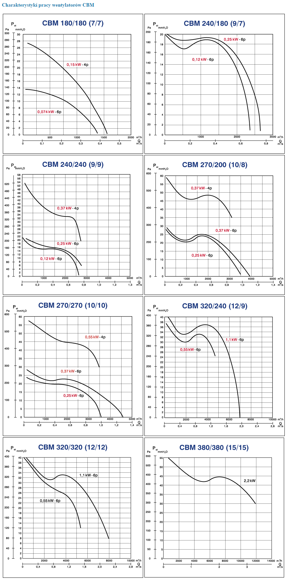![]() | Charakterystyki pracy wentylatorów promieniowych CBM |