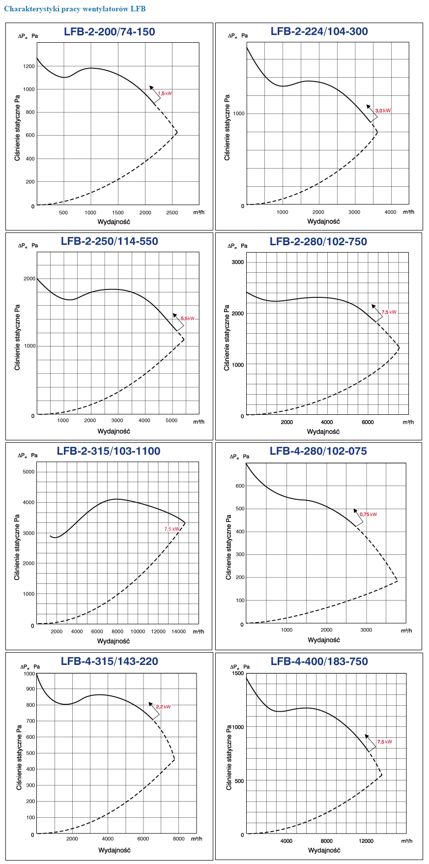 ![]() | Charakterystyki pracy wentylatorów promieniowych LFB |