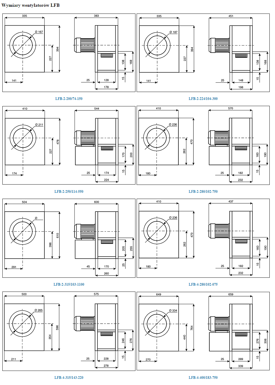 ![]() | Wymiary wentylatorów promieniowych LFB |