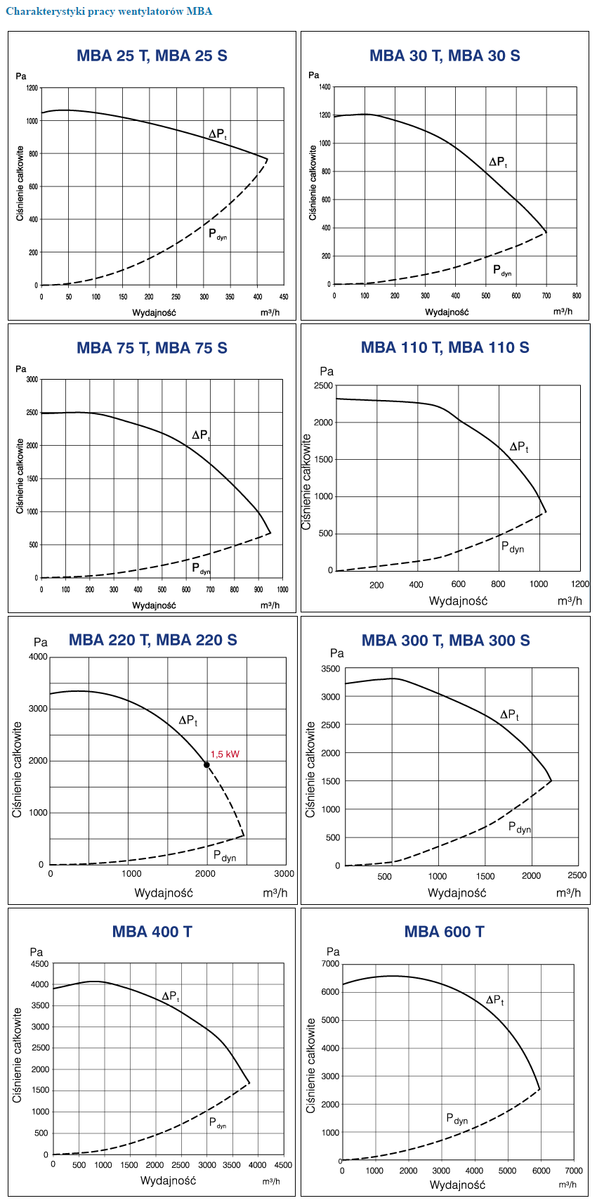 ![]() | Charakterystyki pracy wentylatorów promieniowych MBA |