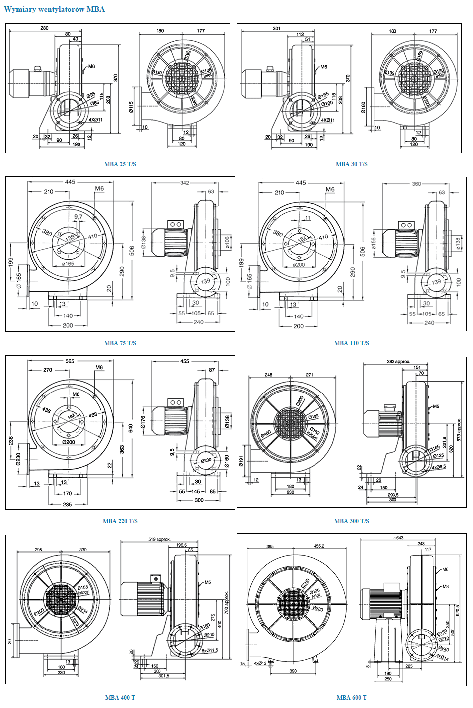 ![]() | Wymiary wentylatorów promieniowych MBA |