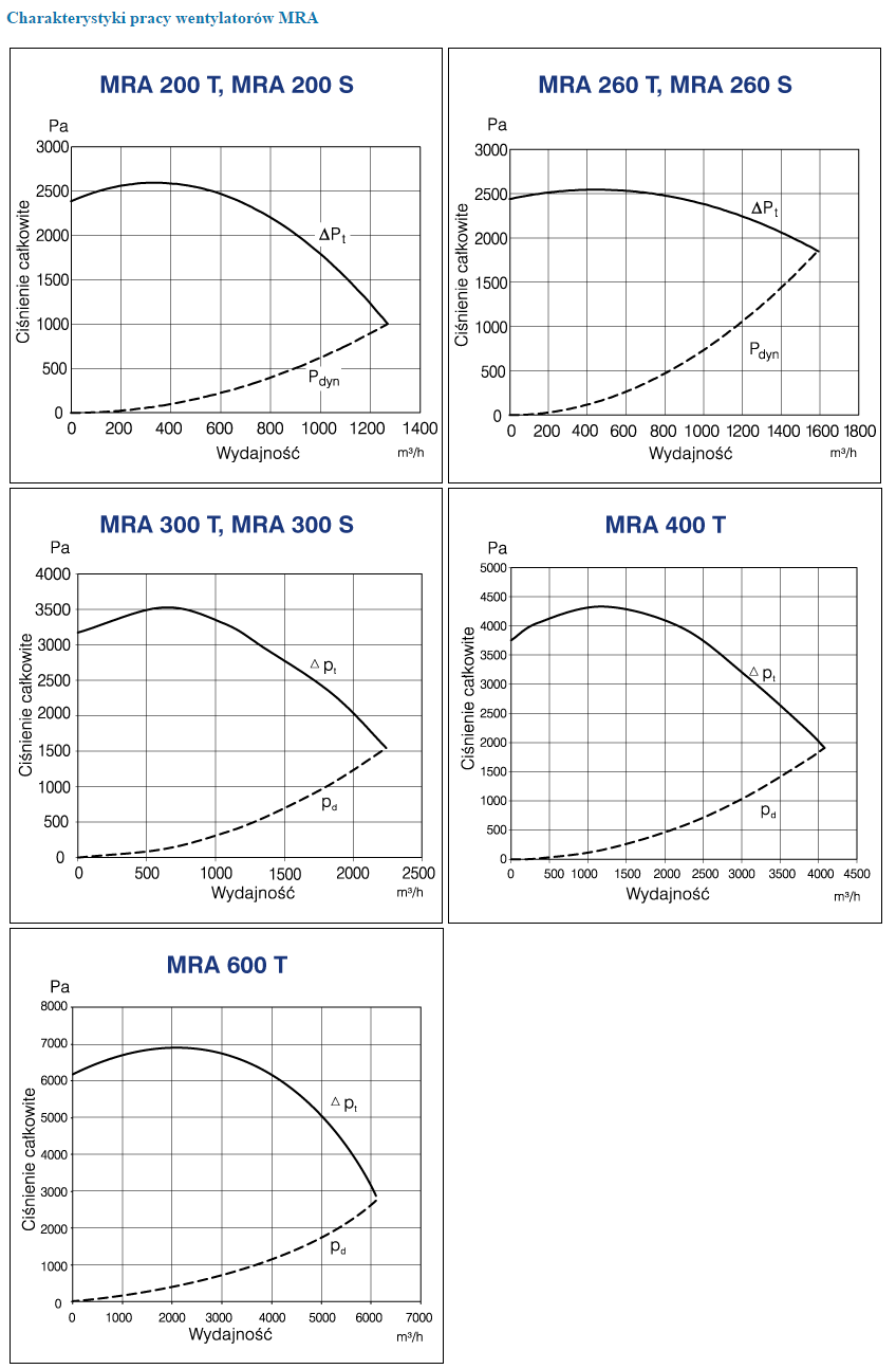 ![]() | Charakterystyki pracy wentylatorów promieniowych MRA |