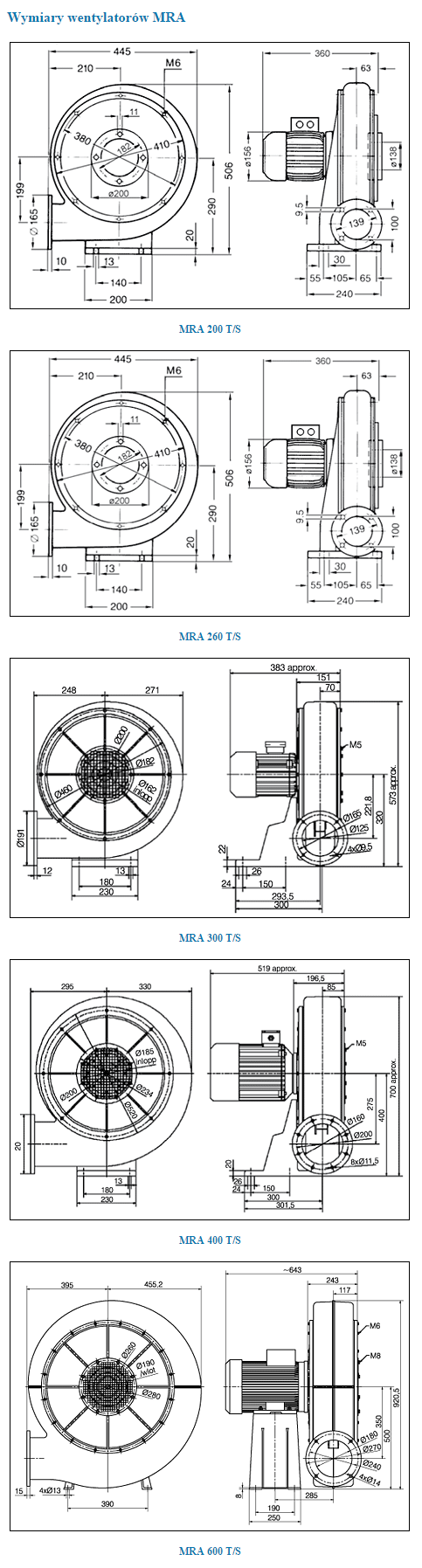![]() | Wymiary wentylatorów promieniowych MRA |